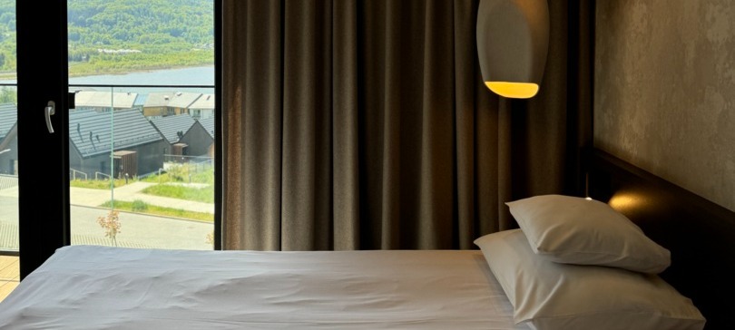 Apartament dla aktywnych z osobną sypialnią, oferujący widok na Zalew Sosnówka i pasmo Karkonoszy, to idealny wybór dla miłośników gór. Z balkonu lub tarasu można podziwiać malownicze krajobrazy. Apartament posiada część wypoczynkową z rozkładaną sofą, aneks kuchenny z płytą indukcyjną i lodówką.